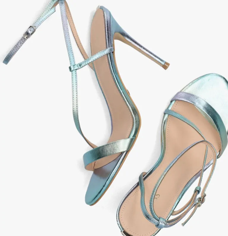 Een mooie outfit maak je natuurlijk helemaal af met een supervrouwelijke sandaal zoals dit turqouise metallic model KADERA van het merk GUESS! Deze verfijnde sandaal van lichtglanzend leer heeft mooie kenmerken zoals de smalle bandjes, de ronde neus en de naaldhak die met hetzelfde leer bekleed is. Daarnaast is de sandaal voorzien van een enkelbandje met goudkleurig gespje en een goudkleurig metalen merkembleem op de hiel. De naaldhak van 10 centimeter hoog geeft jou een flinke dosis zelfverzekerdheid en dankzij de kunststof zool met ribbelprofiel heb je een goede grip. Het voetbed is voorzien van een extra leren toplaag met een zachte dempende schuimlaag, zodat je het er de hele dag en avond op vol kunt houden. Combineer ‘m bij jouw favoriete outfit en steel de show!