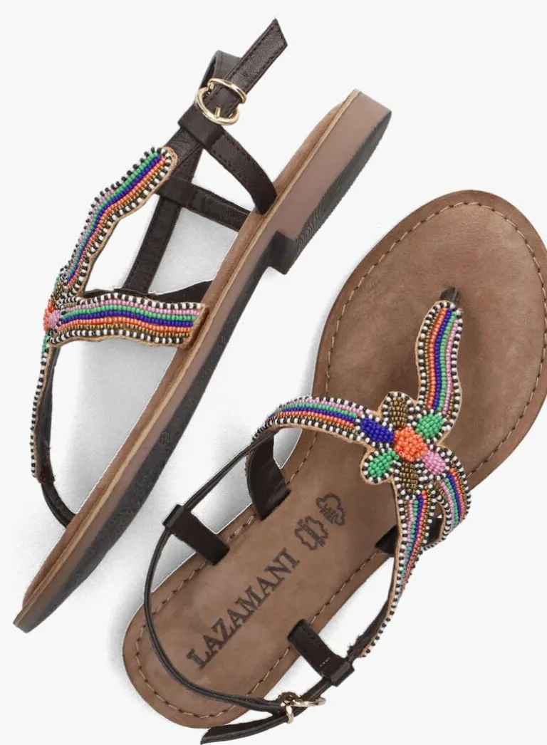 Met sandalen aan je voeten van het merk LAZAMANI ben je verzekerd van eentrendy look in combinatie met een hoog comfortabel gevoel. Alleitems uit de collectie van dit merk zijnvoorzien van een verrassende twist. Dat zie je ook zeker weer terug in deze kleurrijke sandaal 75.298. Het bovenwerk is gemaakt van leer en heeft een mooie decoratie van kleinekraaltjes in de kleuren wit, goud, zwart, oranje, blauw, roze, groen en brons. Het bandje om de enkel is voorzien van een gespsluiting waardoor je ‘m gemakkelijk aan- en uittrekt en de sandaal goed aan je voet blijft zitten. Het binnenwerk is leer gevoerd en de het voetbed met reliëf merkopdruk heeft een fijne suède afwerking met schuimvulling voor een heerlijk zacht en comfortabel gevoel. De rubberen zool is flexibel waardoor hij fijn meebuigt met de voet en is voorzien van een fijn maar gripvast profiel. Een heerlijke sandaal voor allezonnige dagen met een mooie decoratie voor die extra vrolijke touch onder al je outfits!