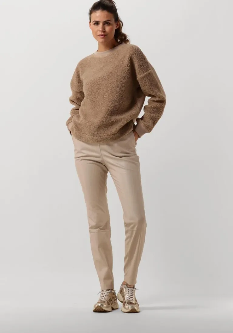 Voel je heerlijk comfortabel in de 54-04-TEDDY trui van MOSCOW. Deze camelkleurige trui is perfect voor een ontspannen dag thuis of een gezellige wandeling in het park. De zachte teddy stof houdt je warm en geeft je een knusse uitstraling. Combineer deze trui met een strakke jeans en stoere enkellaarsjes voor een casual look.