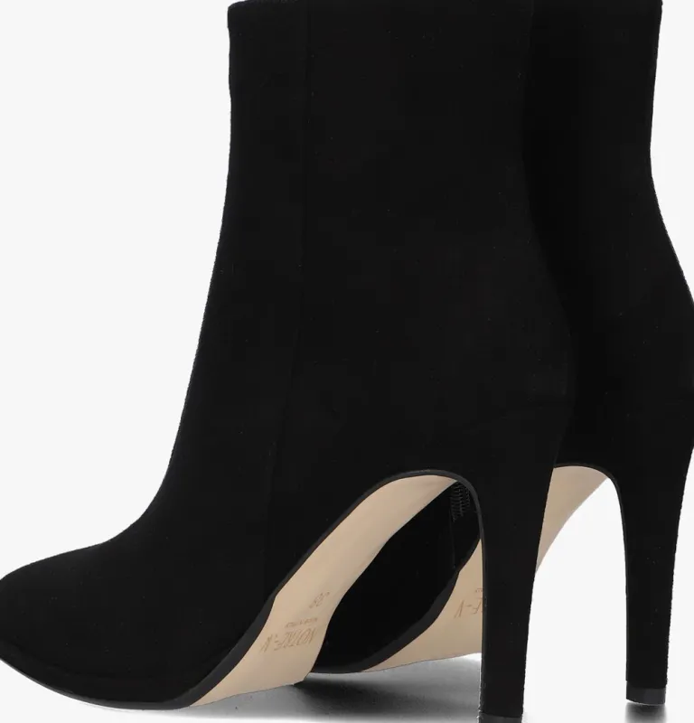 Een elegant laarsje dat overal bij past? Dit model 36536 van het merk NOTRE-V combineer je supermakkelijk! De Italiaanse ontwerpen van dit merk zijn gemaakt van luxe materialen met subtiele accenten en een knipoog naar de laatste trends. Deze schoen is uitgevoerd in zwart suède en heeft een goudkleurige rits aan de binnenzijde van de schacht en een naar binnen gestikte naad aan de zijkant van de schoen. De puntige neus en de naaldhak van ruim 10 centimeter hoog zorgen voor een chique look. Het binnenwerk is gemaakt van leer en leatherlook en de laars heeft een vast voetbed met een opgevuld stuk onder de hiel voor optimaal draagcomfort. Combineer dit stijlvolle item met een jurk of draag ‘m onder een jeans. Waar ga jij voor?