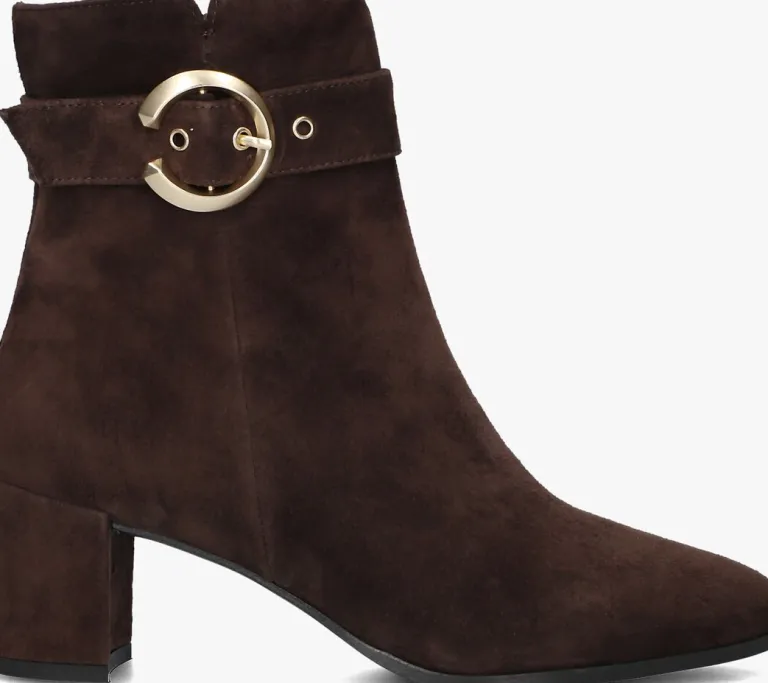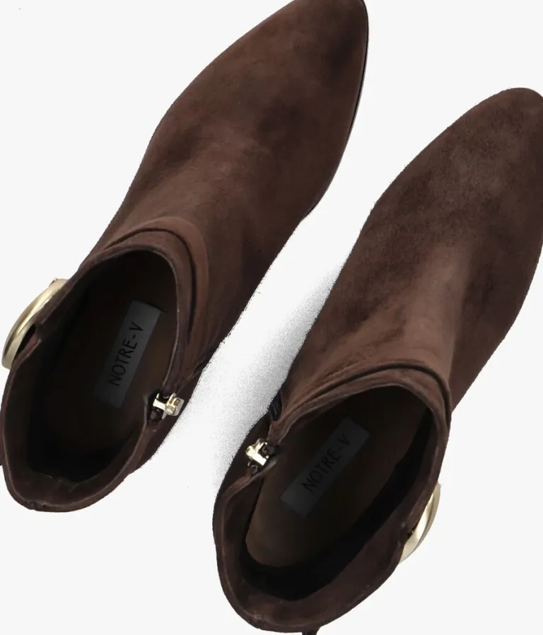 Stap stijlvol de dag in met de zwarte enkellaarzen 8552 van NOTRE-V. Deze elegante schoenen zijn perfect voor een dag op kantoor of een avondje uit. Het bovenwerk bestaat uit bruin leer met een goudkleurige siergesp rondom de schacht. Combineer ze moeiteloos met een jeans of een chique rok voor een verfijnde look. De zachte buitenkant geeft een luxe uitstraling, terwijl de stevige blokhak zorgt voor comfort en stabiliteit. Of je nu een zakelijke meeting hebt of een diner met vrienden, deze enkellaarzen zijn jouw go-to keuze. Voeg een vleugje klasse toe aan je garderobe met deze veelzijdige en tijdloze schoenen.