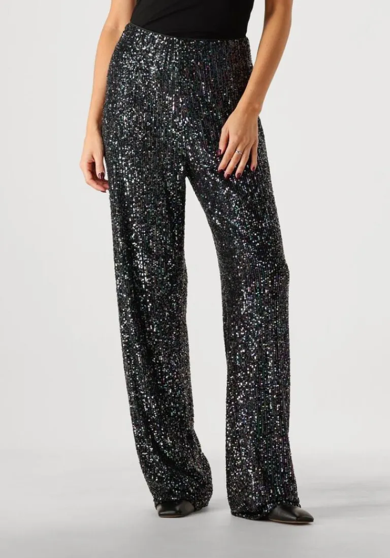 Laat jezelf stralen met de NV-ELEANOR pantalon van NOTRE-V. Deze zwarte eyecatcher, bezaaid met glinsterende pailletten in de kleur paars, zwart is dé must-have voor elke feestelijke gelegenheid. Of je nu de dansvloer onveilig maakt of een party bezoekt, deze pantalon zorgt voor een onvergetelijke indruk.