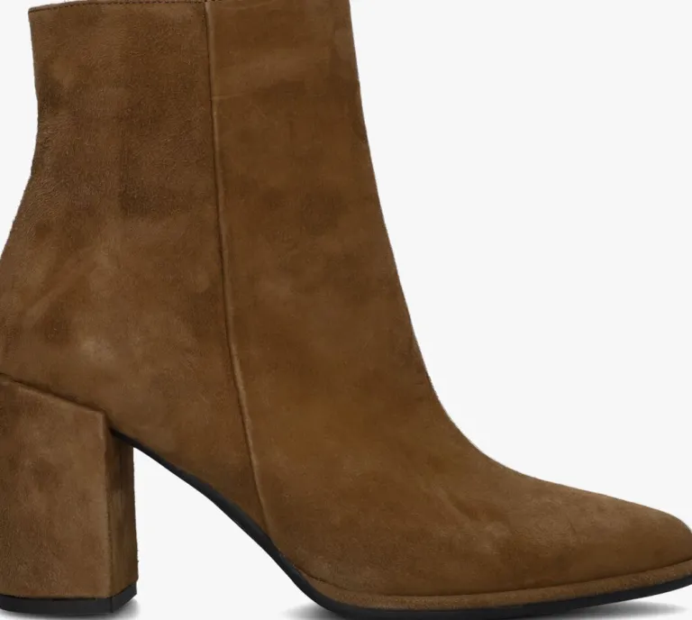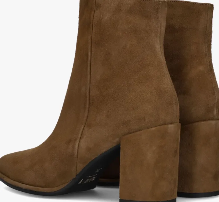 De schoenen van het merk NOTRE-V zijn tijdloos, maar met een knipoog naar de laatste trends. Deze fijne enkellaars 67034 is daar een mooi voorbeeld van. Dit model is uitgevoerd in cognackleurig suède en heeft subtiele details die dit rustige design trendy maken, zoals de spitse neus, de beklede blokhak en de goudkleurige ritshanger met merkreliëf. De blokhak is 8 centimeter hoog en de schachthoogte is 13centimeter, gemeten bij maat 38. Het binnenwerk is gemaakt van leatherlook ik combinatie met een vast, leer voetbed. De rubberen loopzool heeft een gripvast profiel dat zorgt voor veel stabiliteit bij iedere stap. Een trendy schoen die je makkelijk combineert!