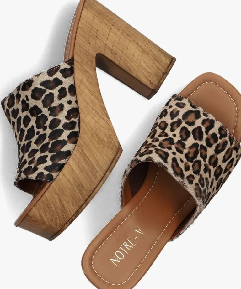 Wauw met desupergave muiltjes 7189 van het merk NOTRE-V toon jij je meest vrouwelijke kant en zie je er super trendy uit. Dit bruine model met vierkante neus en slanke vormgeving heeft een brede wreefband met ponyhair en panterprint. De band is gevoerd met textiel en het leren voetbed bevat een zachte demping voor een heerlijk comfort de hele dag door. De houtlook zool heeft een plateau onder de voorvoet van ruim 4 centimeter hoogte en de hak is bijna 11 centimeter hoog. Met het gripvaste profiel in de loopzool ervaar je een goede grip op zomerse boulevards of in je favoriete stad! Waar doe jij deze prachtige muiltjes naartoe aan?