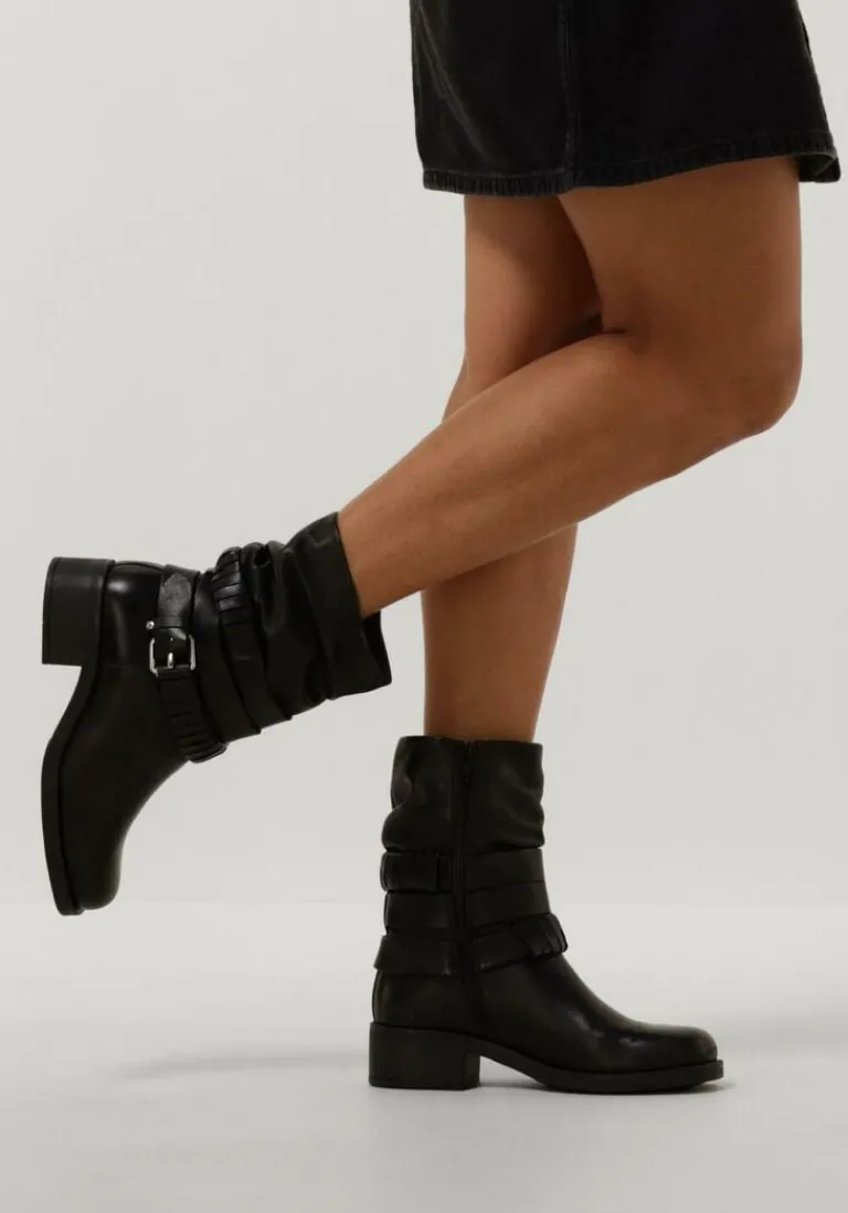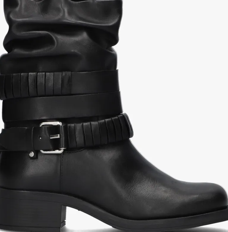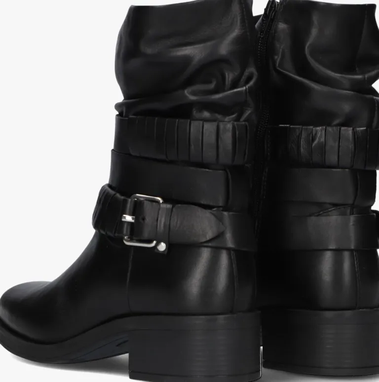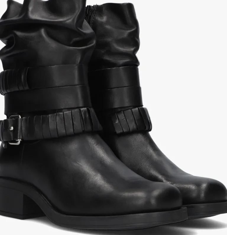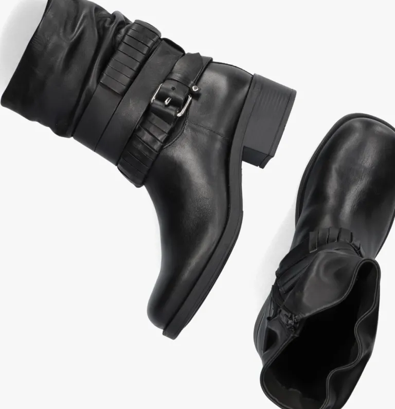 Deze toffe enkellaarzen MODULAR-03 van OMODA zijn altijd een goede optie! Dit model heeft een bovenwerk van zwart leer en krijgt een stoere touch door de vierkante neus, de blokhak van 4 centimeter en de banden rondom de schacht, waarvan één band is voorzien van een siergesp. De schacht heeft een gesmokt uiterlijk en heeft aan de binnenzijde een ritssluiting, zodat je dit model razendsnel aan- en uittrekt. De voering bestaat uit zacht textiel voor een aangenaam comfort en het dempende voetbed is gemaakt van leatherlook. Combineer dit model onder een mini jurkje en steel de show.