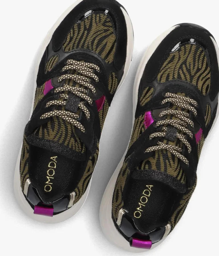 Iedere vrouw heeft een paar opvallendesneakers in de kast nodig! En het liefste nog met een hoog comfort en gemakkelijk te matchen bij allerlei outfits. Deze chunkysneaker 22LPCIBEL voldoet aandeze kenmerken. Dit model komt uit decollectie van het eigen OMODAmerk en heeft een bovenwerk van groen textiel en in de zwarte stof zitten subtiele glitters. Extra tof zijn de metalllic accenten. De sportieve chunky zool met golvende lijnen en fijn reliëf op de zijkant maakt dit model helemaal af. De loopzool beschikt over diepe groeven voor enorm veel grip en stabiliteit. Draag ze lekker sportief met je favoriete jeans of casual met je favoriete jurk!