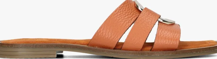 Stap in stijl met deze oranje leren slippers van NOTRE-V. Met de 22718 slippers ben jij helemaal klaar voor de zomer! Deze prachtige oranje leren slippers bestaat uit drie bandjes met in het midden een goudkleurig element. De binnenkant is van zacht suède en de zool van rubber. Combineer ze met een luchtige zomerjurk of een trendy short voor een casual look. Of draag ze onder een chique jumpsuit voor een meer geklede outfit. Met deze slippers loop je er altijd fashionable bij, dames! Laat die zon maar komen.