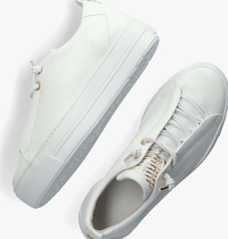 Met deze witte lage slip-on sneaker 5017 metplatformzool uit de Super Soft-collectie van het merk Paul Green heb jij de perfecte sneaker voor al jouw dagelijkse bezigheden gevonden. Door de perfecte pasvorm in combinatie met het dempende voetbed en de flexibele rubberen zool ervaar je namelijk veel loopcomfort én dit lichtgewicht model geeft jouw outfit ook nog eens een trendy-sportytouch. Dit model is uitgevoerd in topkwaliteit structuurleeren heeft een voering van zacht suède en een vastvoetbed van leer. Opvallende details zijn de unieke sluiting met elastische veters, de goudkleurige veterringen en de goudkleurige print op de tong. De zoolrand is voorzien van een speels kartelrandje, een stootrand op de voorkant en een rubberen merklabel aan de achterkant. De rubberen XLEXTRALIGHT®-zoolis bijna 4centimeter dik en heefteengripvastprofiel in de loopzool. Combineer ‘m onder een fijne jurk of lekker casual onder een jeans om je outfit helemaal af te maken.
