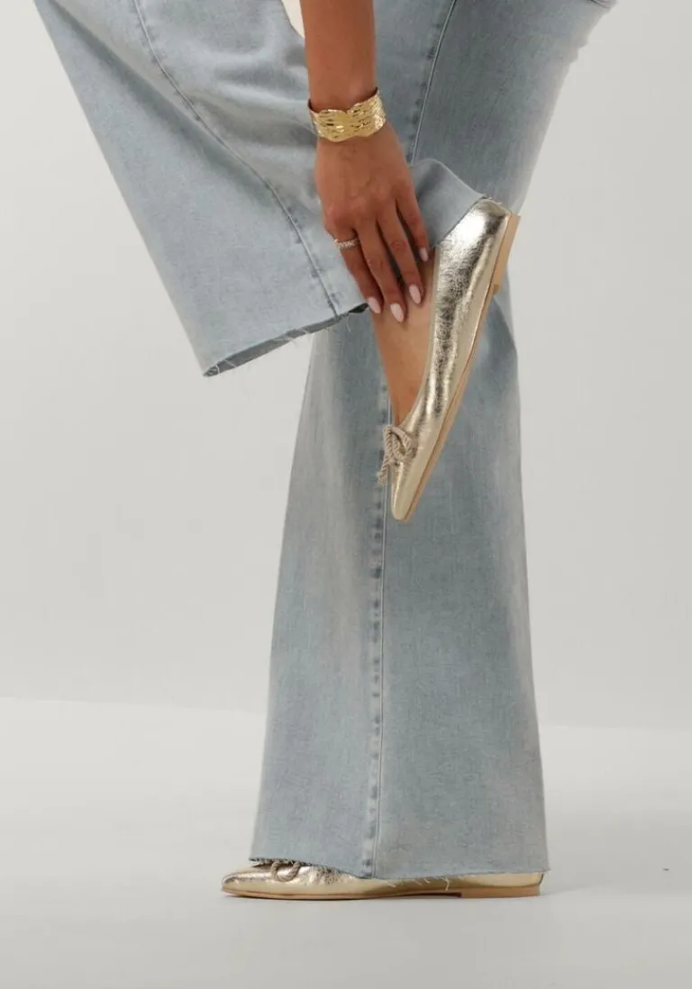 Stap in stijl met deze puntige ballerina’s van Pretty Ballerinas. Gemaakt van goud leer met gedragen effect maakt dit item een echte eyecatcher. De ballerina is afgewerkt met een strik detail en textiele bies voor een leuke touch. Door de zachte roze canvas voering met comfortabele leren voetbed, is deze ballerina perfect voor een dagje shoppen of een avondje uit. De rubberen zool zorgt voor grip en stabiliteit, terwijl de puntige neus een trendy touch toevoegt aan je outfit. Straal met deze prachtige ballerina’s aan je voeten!