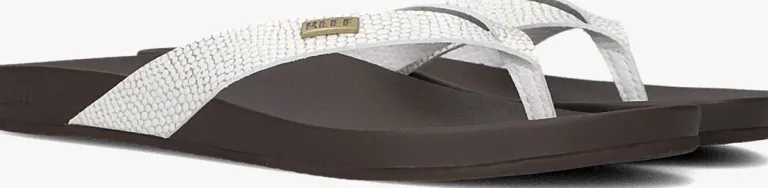 Uit de collectie van het merk Reef is deze uitzonderlijk comfortabele slipper CUSHION COURT. Dit witte model heeft bandjes van leatherlook met reprielenprint en goudkleurige glitters. Het schokabsorberend, gekussend bounce-voetbedmet anatomische vormgeving zorgt voor optimaal comfort tijdens ieder avontuur.De gevormde, rubberen buitenzool is flexibel en biedt veel stabiliteit.De ideale slipper voor ieder avontuur!
