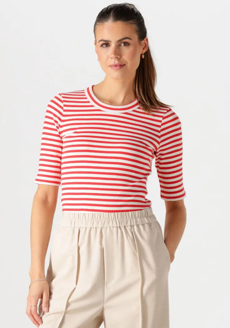 Voeg een vleugje elegantie toe aan je garderobe met de DAGNAIW STRIPED T-SHIRT van INWEAR. Deze rood gestreepte top, gemaakt van zacht katoen, biedt ultiem comfort en stijl. Perfect voor een dagje shoppen of een ontspannen lunch met vriendinnen. Combineer met een strakke jeans voor een casual look of draag onder een blazer voor een chique touch. De subtiele strepen geven een speelse twist aan je outfit. Een veelzijdige must-have voor elke dame die houdt van tijdloze mode.