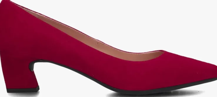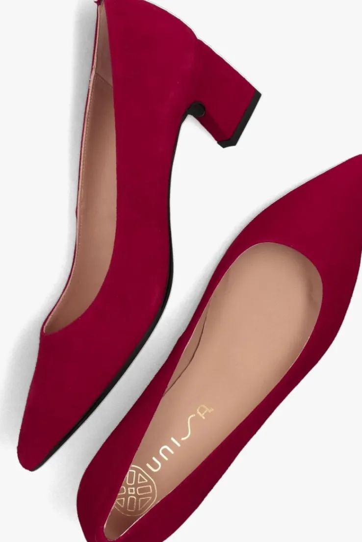 Pumps voor dames van het merk Unisa. Deze instapschoen met hak is uitgevoerd in de kleur rood. De binnenkant is uitgevoerd in leer en een suéde contrefort draagt bij aan het loopgemak. De rubberen loopzool heeft een medium profiel en de hak meet circa 5 cm.