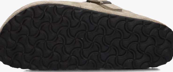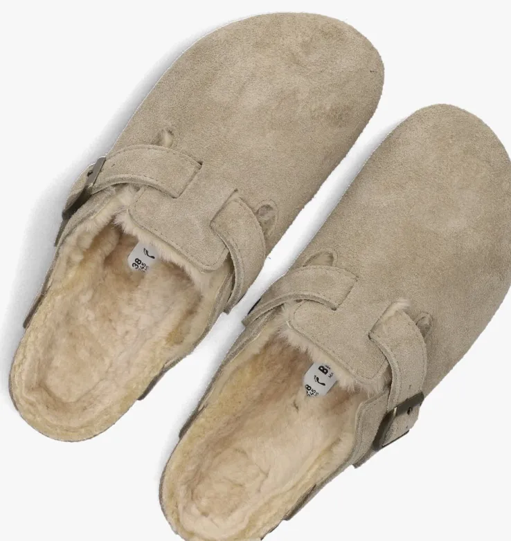 Deze taupekleurige BOSTON W clog van het merk Birkenstock is een echte klassieker die zonder problemen het binnen en buiten gedragen kan worden gedragen. In de winter lekker binnen bij de houtkachel en wanneer je even naar de brievenbus moet of de container buiten moet zetten is dat ook geen probleem door de stevige zool van rubber. Het bovenmateriaal van hoogwaardig en zacht suède vormt zich als een tweede huid naar de voet en dankzij het zachte voetbed van wol in combinatie met het anatomisch gevormde kurk-latex heeft dit model een zeer fijn draagcomfort, mede doordat het kurk zich bij het dragen naar de voet gaat vormen. De geïntegreerde schuimlaag zorgt voor een extra dosis draagcomfort en verwent de voet de hele dag door. De metalen gesp heeft een merkopdruk en is verstelbaar voor iedere voet. De rubberen zool heeft een grof profiel met merkopdrukken voor een goede grip.