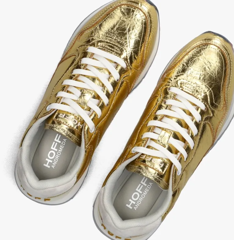 Voeg een vleugje glamour toe aan je dagelijkse look met de goudkleurige ANDROMEDA sneakers van THE HOFF BRAND. Perfect voor een dagje shoppen of een ontspannen wandeling door het park. Deze sneakers stralen luxe uit en combineren moeiteloos met een casual jeans of een stijlvolle midi-rok. De glanzende gouden kleur zorgt ervoor dat je opvalt, terwijl het comfortabele ontwerp je voeten blij houdt. Of je nu kiest voor een relaxte outfit of een meer geklede look, deze sneakers zijn de ideale metgezel. Laat je inspireren door de veelzijdigheid en het comfort van de ANDROMEDA sneakers.