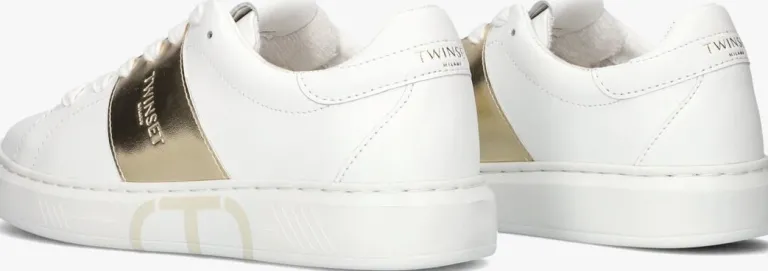 Met deze lage sneakers van TWINSET MILANO ben je helemaal klaar voor de zomer! De sneakers hebben een frisse witte kleur, perfect voor dames die houden van een stijlvolle en trendy look. Gemaakt van wit leer en binnenwerk van textiel in combinatie met leer, is deze sneaker echt een must voor je voeten. De goudkleurige panelen met merkreliëf maakt dit item uniek. Ook de tong en de 3 centimeter hoge zoolrand hebben het Twinset logo. Draag de sneakers met dagje shoppen in de stad of een gezellige lunch met vriendinnen. Combineer ze met een luchtige zomerjurk of een trendy jeans voor een fashionable outfit. Met deze sneakers maak je gegarandeerd een statement en loop je comfortabel de hele dag door. Voeg deze must-have sneakers toe aan je collectie en straal zelfvertrouwen uit!