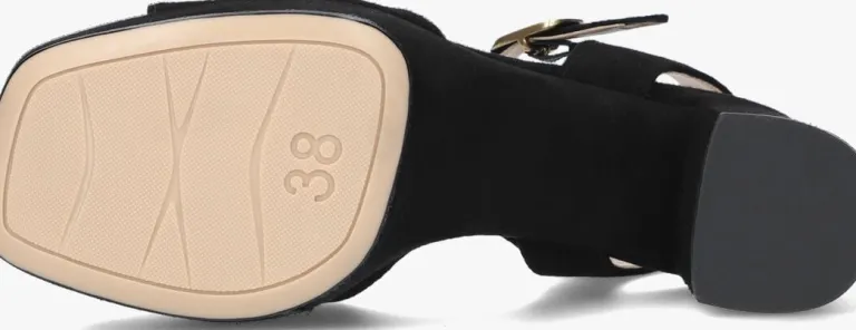 Ga voor een elegante retro look met deze zwarte sandaal NEY met plateau, blokhak en vierkante neus van het merk UNISA! Dit unieke model van suède heeft een brede band op de voorvoet en een sierlijk enkelbandje met handige goudkleurige gespsluiting. Alle bandjes zijn gevoerd met soepel leer en het voetbed is van suède met een leren toplaag met licht dempende werking voor een comfortabel gevoel. Mooi detail is dat het plateau en de blokhak bekleed zijn met hetzelfde suède, waardoor de sandaal een sophisticated uitstraling heeft onder jouw outfit. De rubberen loopzool en haktip zorgen voor een goede grip. Het plateau onder de voorvoet is 3 centimeter dik en de hak heeft een hoogte van 7 centimeter. Combineer ‘m bij jouw mooiste outfit en steel de show!