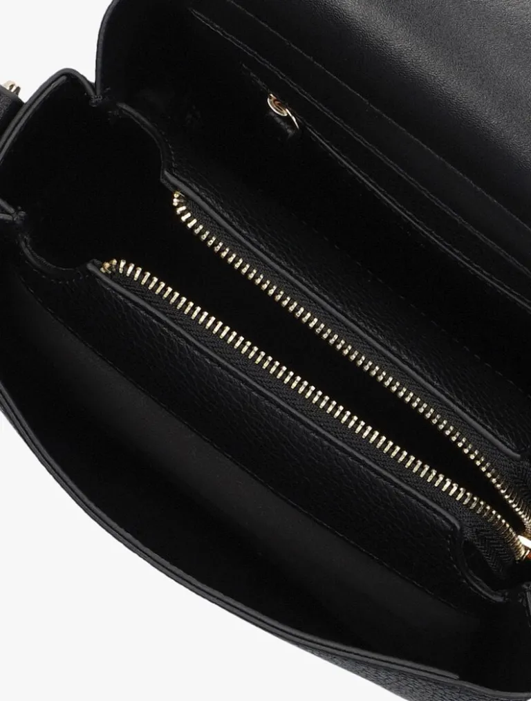 Verwen jezelf met deze zwarte schoudertas ALEXIA SATCHEL van VALENTINOBAGS. Dit ruime model heeft een fijne structuur in het soepele lederlook bovenwerk en kan worden afgesloten met een soepelvallende klep met magneetsluiting. De tas bestaat uit twee ruime steekvakken, een ruim ritsvak en een klein ritsvakje waarin je jouw spulletjes perfect kunt organiseren. Het binnenwerk is gevoerd met glad lederlook materiaal in combinatie met zijdezacht microtextiel. De middellange schouderband (77 cm) van glad lederlook is voorzien van schuifbare, goudkleurige merkletters die de tas een luxe en trendy touch geven.Daarnaast is de schouderbandtevens afneembaar zodat je ‘m eenvoudig kunt vervangen voor een andere band voor een perfecte match bij je outfit.Of je nu gaat shoppen of werken; deze ruimeschoudertas is jouw nieuwelievelings! Afmetingen: 26x 12x 19cm (lengte x breedte xhoogte)