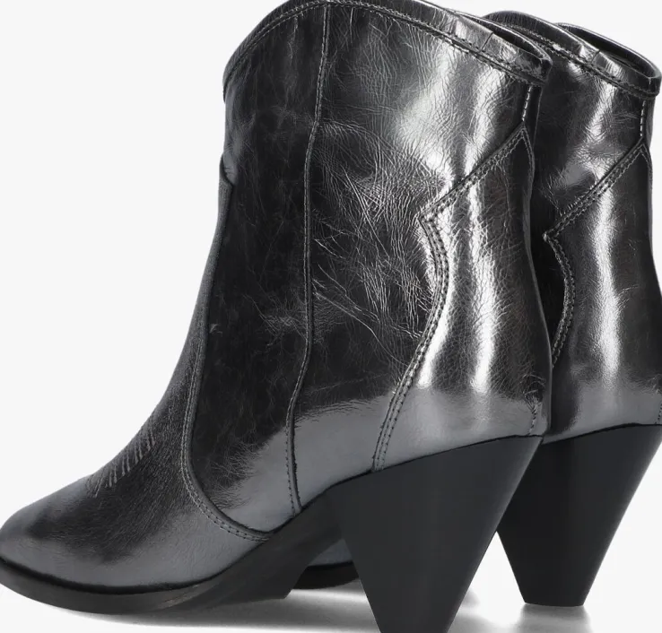 Ben je op zoek naar unieke laarsjes met een vrouwelijke touch? En wil je dat ze ook nog eens lekker comfortabel lopen? Dan is dit model een hele goede kandidaat om aan jouw schoenengarderobe toe te voegen! Deze zilverkleurige enkellaars CREAM met city western afwerking van het merk TORAL kenmerkt zich door de mooie accenten zoals de spitse neus en de kegelhak. Ook de vorm van de schacht is uniek, doordat hij afgerond is en hem een nette stoere geeft. Het bovenwerk bestaat uit hoogwaardig leer en dit model heeft een binnenvoering van leer en een vast voetbed met dempende schuimlaag. Extra tof is de brede zoolrand, het stikwerk op de voorvoet en de opgestikte patronen op de schacht. De laars blijft goed aan je voet zitten, door de elastishe band in de schoen. De zool is van rubber en heeft een fijn profiel wat samen met de kunststof haktip voor een goede grip zorgt. De hak is ruim 7 centimeter hoog en de schacht heeft een hoogte van bijna 15 centimeter. Combineer ‘m elegant met jouw lievelingsjurk!