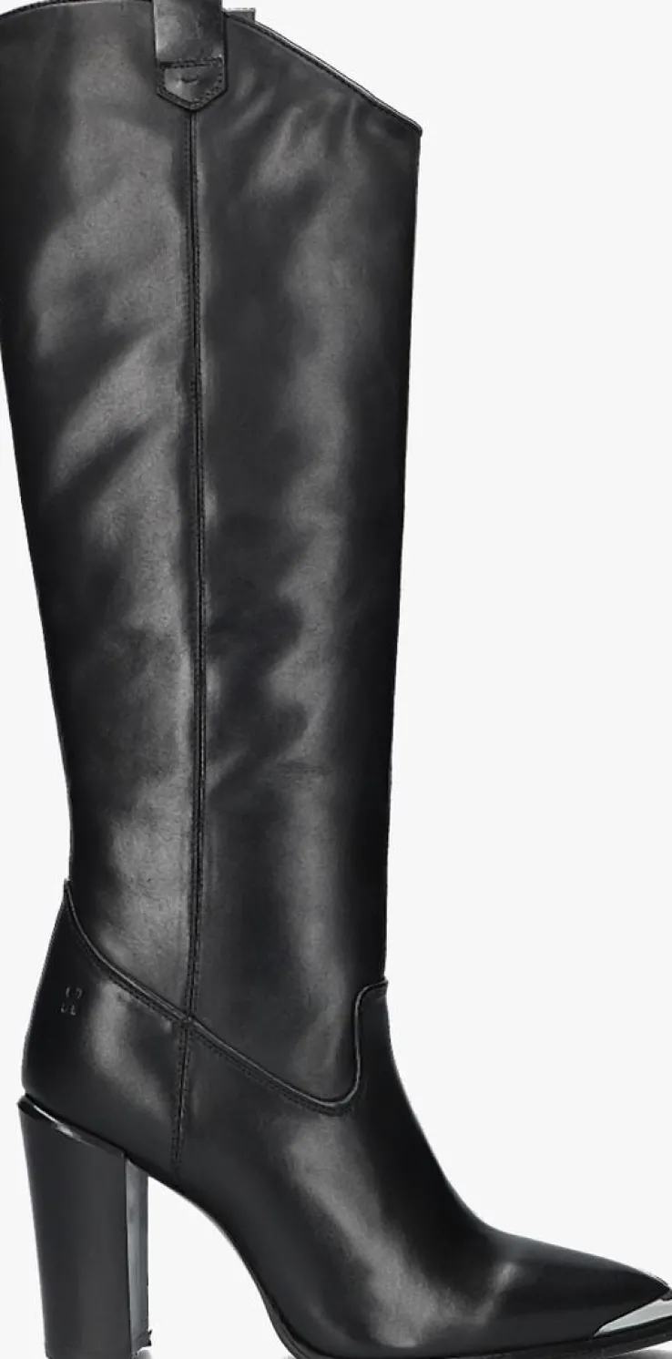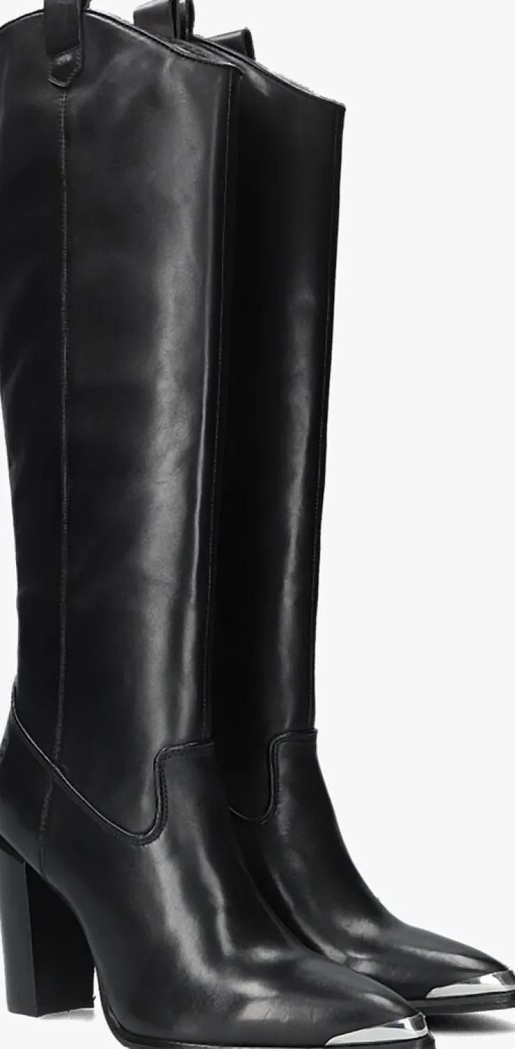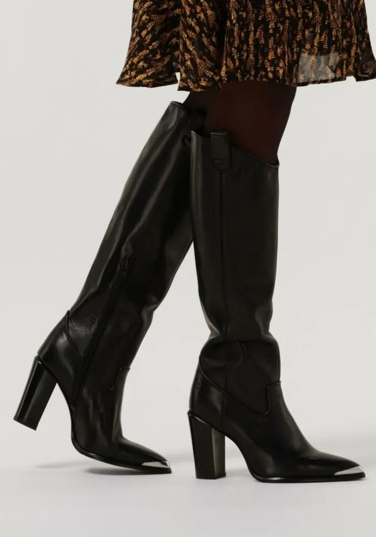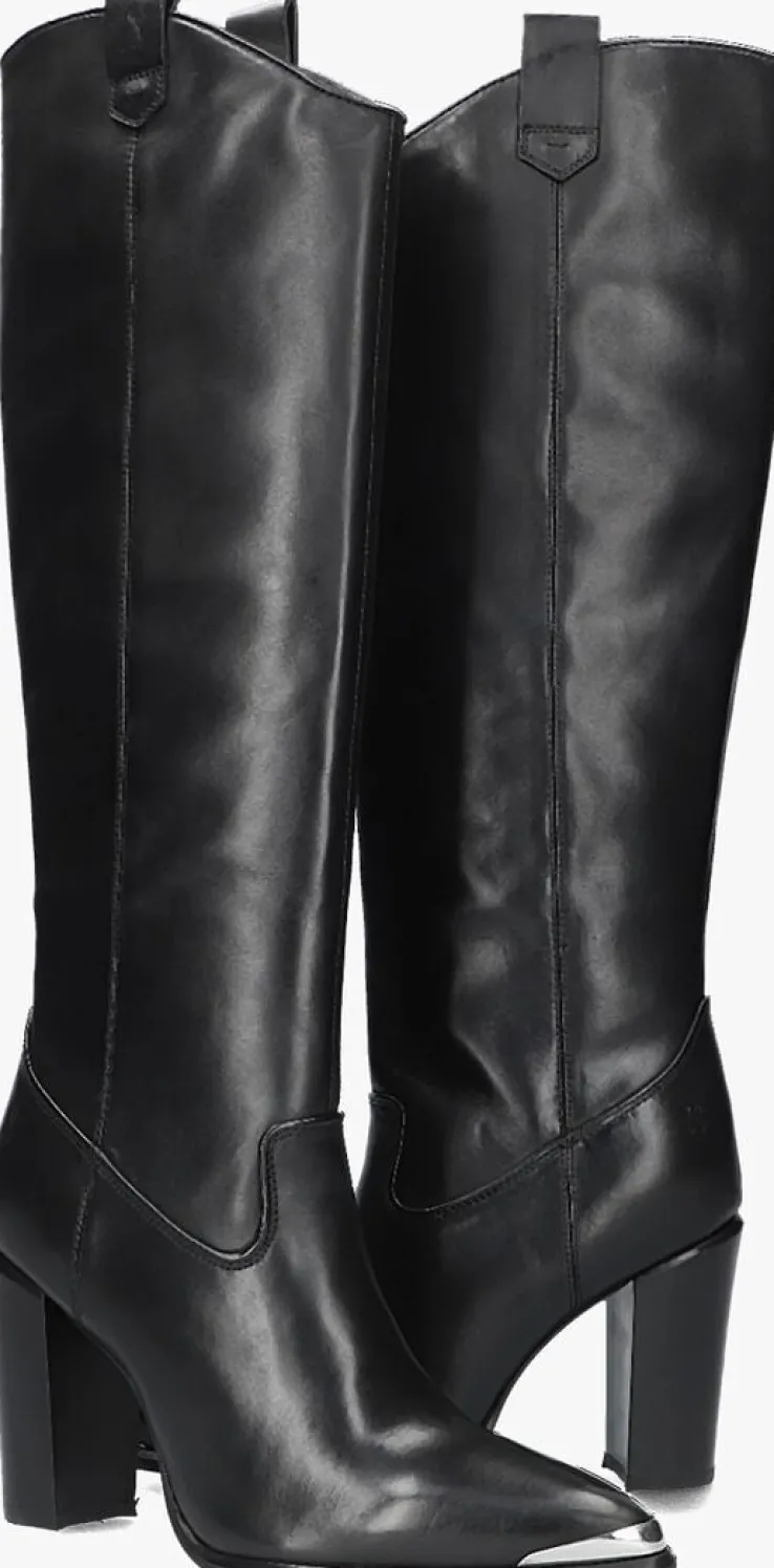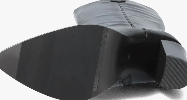 Ga voor een opvallende, stoere look met deze zwarte lange laars NEXT AMERICANA LONG met toffe cowboy-look van het merk BRONX! Deze lange laars heeft een afgeronde V afwerking aan de voorzijde van de schacht met mooie ronde afwerking en een spitse neus met zilverkleurige metalen rand voor die stoere cowboylook. De laars heeft een slank silhouet die jouw been mooi accentueert en een subtiel X-embleem in reliëf op de hiel. Je trekt dit model gemakkelijk aan-en uit met de aantreklussen op de schacht en de ritssluiting aan de binnenzijde. Het binnenwerk is gemaakt van zacht leer met een vast voetbed. De rubberen zool geeft de laars een goede grip en de blokhak heeft een hoogte van 10 centimeter. De schacht is 41 centimeter hoog, gemeten bij maat 38. Draag ze ultra feminin met een rok of jurk of superstoer onder een jeans!