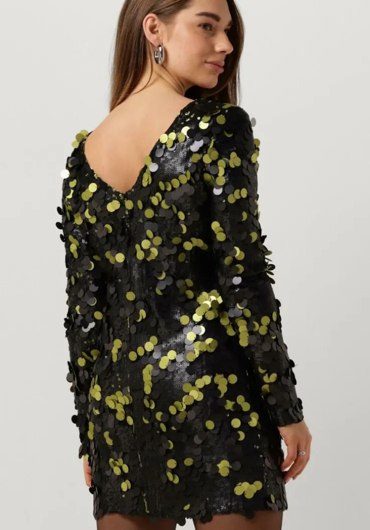 Met de TINI SEQUINS STRAIGHT DRESS van COLOURFUL REBEL ben jij klaar om te feesten! Deze zwarte mini jurk is perfect voor dames die willen stralen op een party. Gemaakt van polyester, voelt de binnenkant heerlijk zacht aan op je huid. Het bovenwerk is voorzien van kleine en grote pailletten in een groene en zwarte kleur. Combineer deze jurk met een paar elegante hakken en je bent klaar om de dansvloer te veroveren. Of draag hem met stoere boots voor een edgy look. Deze jurk past goed bij andere feestelijke kledingstukken, zoals een glitter clutch of statement sieraden. Laat je creativiteit de vrije loop en creëer jouw ultieme party outfit!