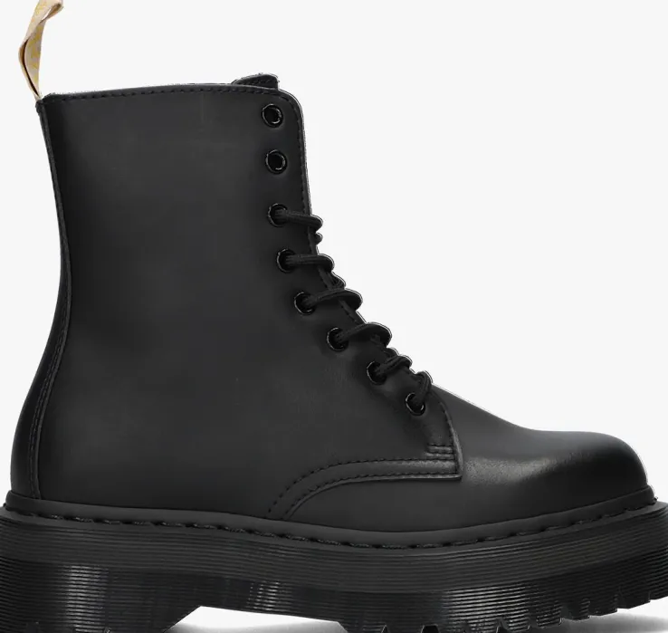 Deze vegan-friendlyveterboots VEGAN JADON II MONO met platformzool vanDr.Martenszijn kick-ass!Deze zwarte chunky bootszijn een volledig nieuwe interpretatie van de iconische, originele 1460-boots en hebben een dikke plateauzool die assertiviteit uitstraalt! Ze zijn gemaakt vanOxford Rub Off, hetgo-to vegan materiaal – een synthetische leervervanger die net zo kwalitatief is en dat zónder gebruik van dierlijke producten! Het binnenwerk is van textiel en het voetbed is niet uitneembaar. De rits op de zijkant zorgt voor een unieke look en je trek je boots er gemakkelijk mee aan en uit. De veterboots hebben kenmerkende Dr. Martens accenten zoalsde gegroefde zoolrand, de oversized hiellus, hetstiksel op de zoolrand en de metalen veterogen. De schoen is gemaakt om lang mee te gaan en heeft daarom de welbekende Goodyear-zool met het iconische luchtkussen in de hak. Deze AirWair™ zool van 4,5 centimeter dik is olie- en vetbestendigen biedt een goede schuur- en slipweerstand. Draag ze onder een jeans of ga de uitdaging aan en match ze onder een rokje of jurkje. *Maatadvies: schoenen van Dr. Martens moeten eerst goed ingelopen worden, maar daarna wil je nooit meer zonder!