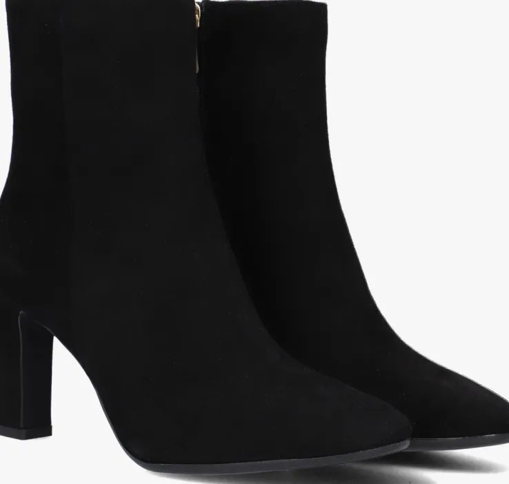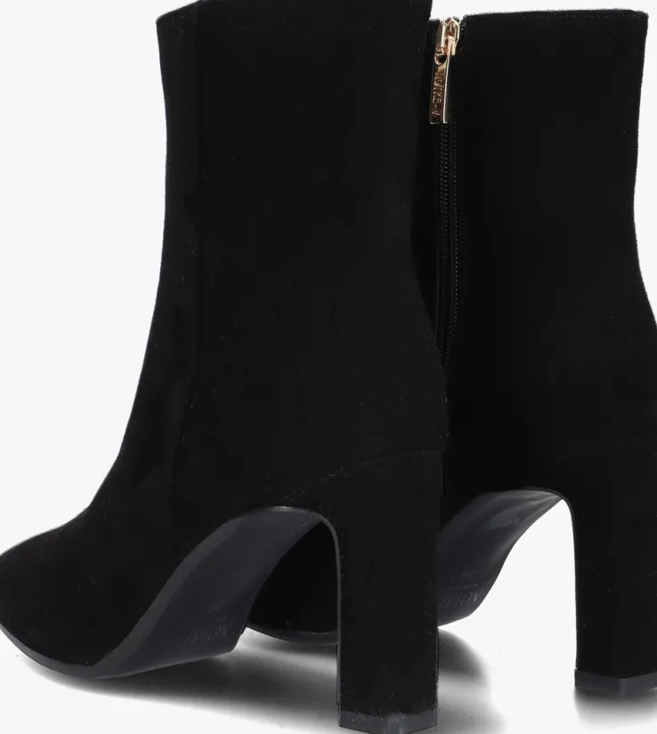 Ga voor een chique look met deze enkellaars 11236 van het toffe merkNOTRE-V!Dit modelheeft een bovenwerk van hoogwaardig suède in een mooie, zwarte kleur. De laars heefteen rechte schacht met een handige ritssluiting aan de binnenzijde om ‘m gemakkelijk aan en uit te trekken. Opvallend detail is de naar binnen gestikte naad aan de schacht en de goudkleurige ritshanger met merkreliëf. Verder heeft dit item een trendy neus met een smalle blokhak van zo’n 9 centimeter hoog. Het binnenwerk bestaat uit zacht leer in combinatie met leatherlook dat comfortabel aanvoelt aan je voeten en de schoen heeft een vast voetbed. De kunststof loopzool geeft de laars een mooi afgewerkt geheel en met het fijne lijntjesprofiel heb je een goede grip. Deschacht is 14 centimeter hoog, gemeten bij maat 38. Draag de schoenen elegant onder eenjurkje of stoer onder een jeans!