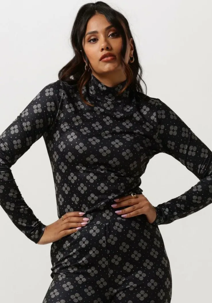 Met de NV-COLETTE TOP van NOTRE-V ben je helemaal on-trend! Deze zwarte longsleeve met print is gemaakt van polyester en perfect voor dames die op zoek zijn naar een stijlvolle en comfortabele top. Draag deze top tijdens een gezellige lunch met vriendinnen of tijdens een ontspannen wandeling in het park. Combineer de top met een mooie jeans en sneakers voor een casual look, of met de bijpassende broek als set!