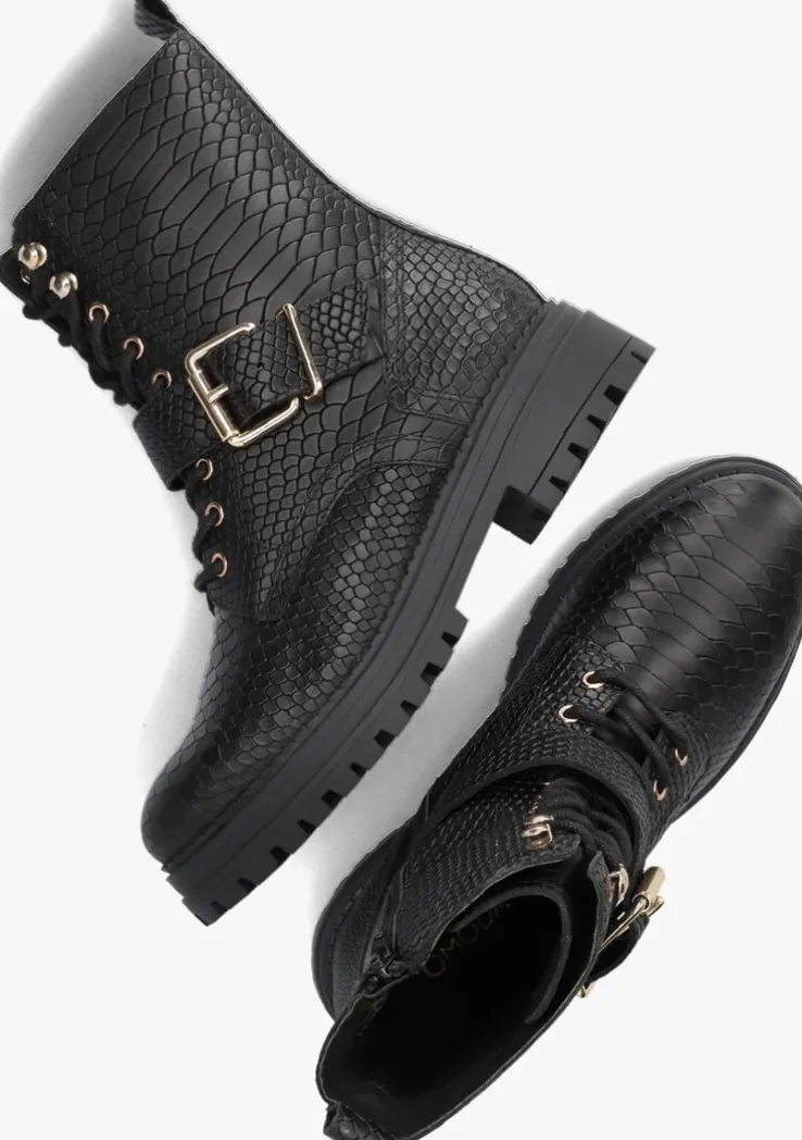 Deze zwarte veterboot LUNA-42 van het merk OMODA kun je eindeloos combineren! Dit model is uitgevoerd in hoogwaardig leer met slangenprint en is voorzien van toffe details. Zo heeft de boot goudkleurige veterringetjes, ronde veters, een siergesp rondom de schacht en de dubbele stiksels. Het binnenwerk is gemaakt van textiel en leer en heeft een vast voetbed met fijne demping. De rubberen loopzool met stoer karakter heeft een gripvast profiel voor veel stabiliteit en een hak van 4 centimeter hoog. Door de ritssluiting aan de zijkant trek je de schoen snel en eenvoudig aan en uit. Draag dit item onder een toffe maxi jurk of stoere jeans!