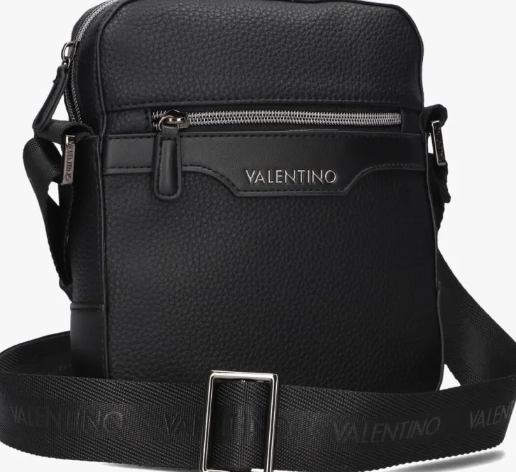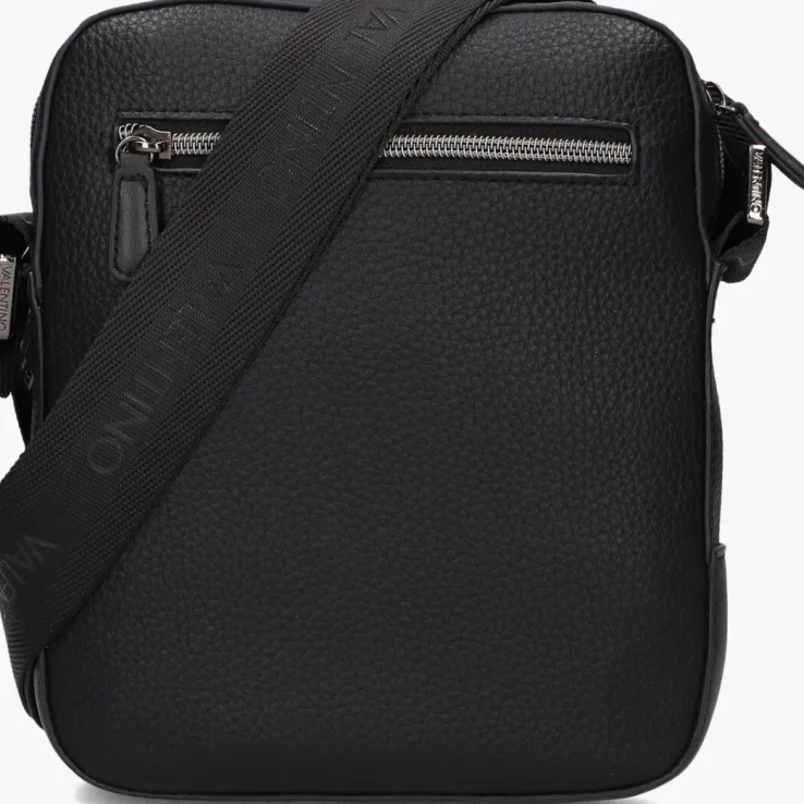 Met de EFEO CROSSBODY schoudertas van VALENTINO BAGS maak je een fashion statement. Deze zwarte tas is uitgevoerd in zwart leatherlook, heeft een compartiment en word afgesloten met een rits. De binnenzijde is gevoerd met zwart textiel en er bevind zich één steekvak van smartphone grootte, ook heeft het een ritsvakje waar je jouw blangrijke spullen in kunt opbergen. Aan de voorzijde bevind zich een ritsvak en het bekende merkembleem in het zilver. Aan de achterzijde bevind zich ook een ritsvak waar je extra spullen in kunt meenemen. De tas bevat een brede zwarte schouderband van glanzend textiel en heeft herhalende merkopdrukken en is verstelbaar op de gewenste lengte, zodat je de tas kunt dragen zoals jij wilt! Afmetingen: 19 x 5,5 x 23 (lengte x breedte x hoogte)